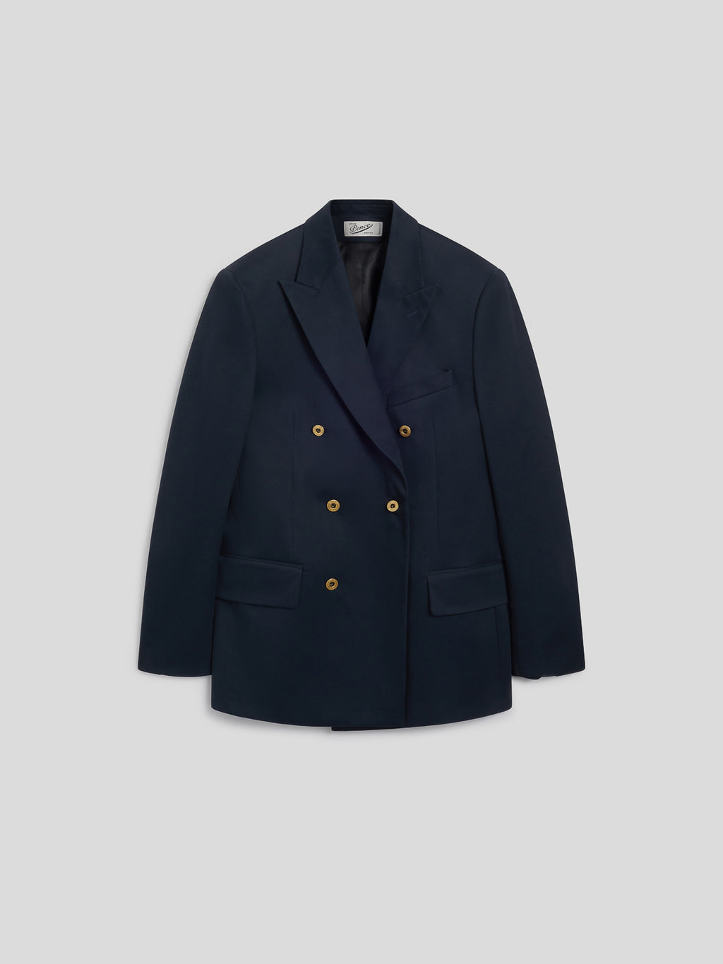 Il blazer doppiopetto in rasatello di cotone è un’icona di carattere e raffinatezza. Il revers a lancia e la lavorazione ne esaltano l’eleganza, unendo tradizione sartoriale e spirito contemporaneo. Taglio elegante e pulito, ideale per abbinamenti formali o smart casual.