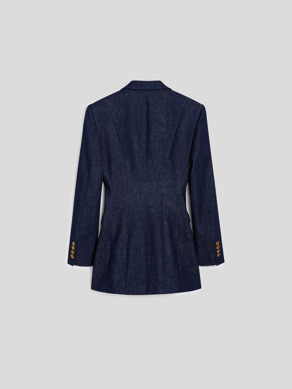 BLAZER MONOPETTO DA DONNA REVERS A SPECCHIO REGULAR FIT IN DENIM BLU COMFORT