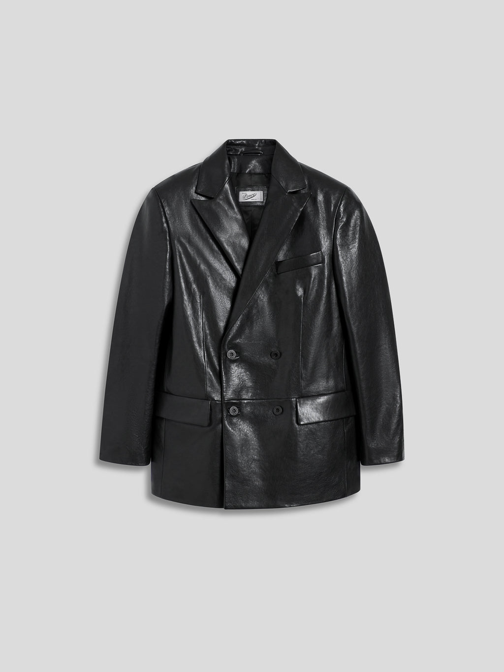 BLAZER DOPPIOPETTO DA UOMO REVERS LANCIA REGULAR FIT IN PELLE D'AGNELLO COLORE NERO