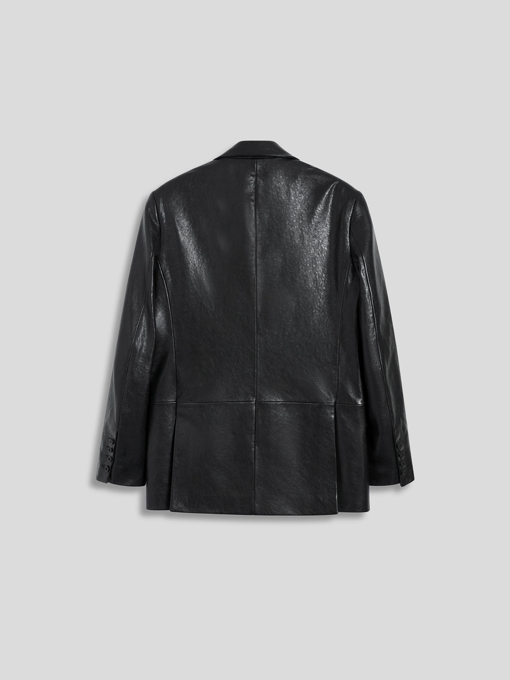 Blazer doppiopetto in morbida pelle di agnello è un’icona di carattere e raffinatezza. Il revers a lancia e la lavorazione ne esaltano l’eleganza, unendo tradizione sartoriale e spirito contemporaneo. Un capo destinato a durare, con personalità unica.