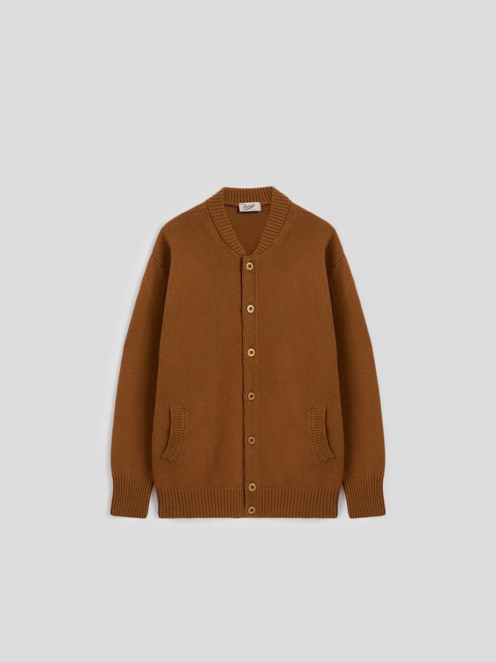 BOMBER DA UOMO LAVORATO A MAGLIA OVER FIT IN LANA CASHMERE COLORE TABACCO