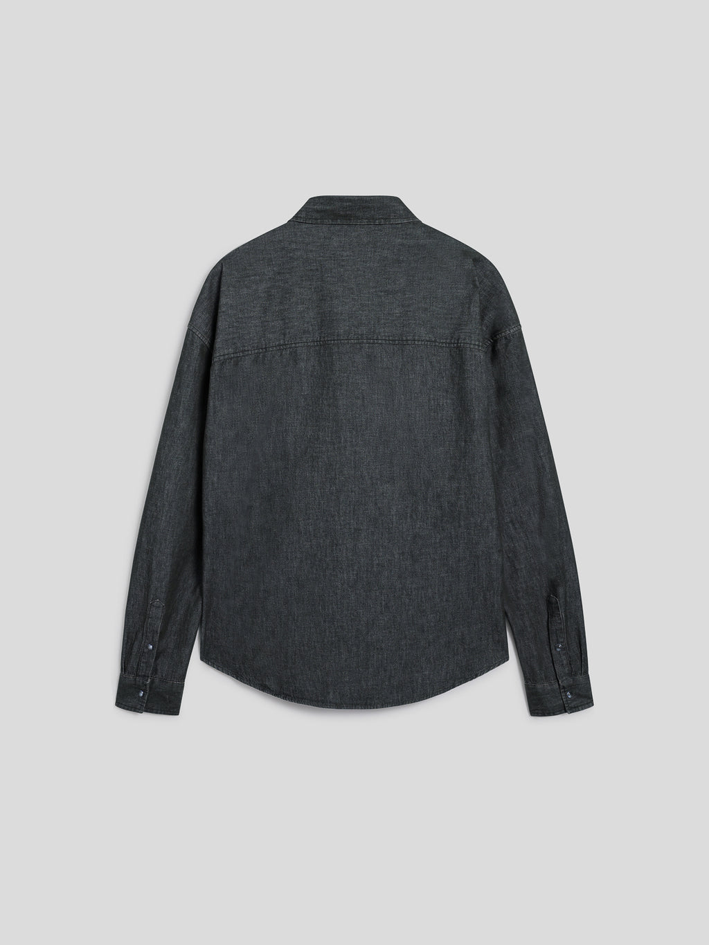 Camicia maniche lunghe in chambray dalla vestibilità over, ideale per un look casual-elegante. Il tessuto fresco e leggero offre una caduta morbida e un comfort quotidiano, senza rinunciare a stile e carattere. Le tasche con pattina applicata aggiungono praticità e una nota sartoriale. Realizzata in Italia, rifinita per durare stagione dopo stagione.