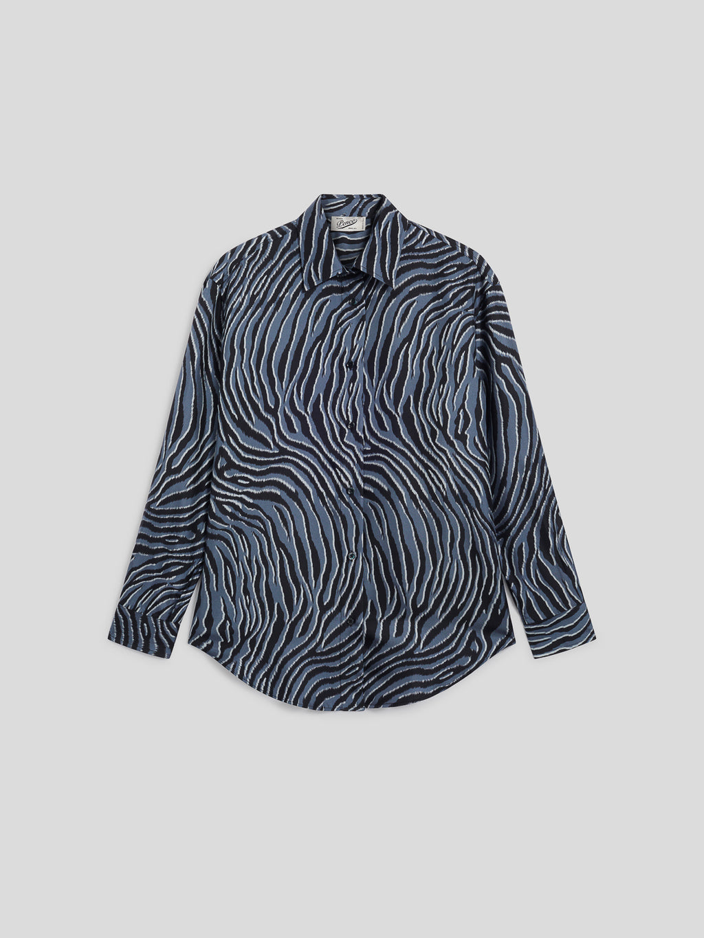 Camicia maniche lunghe in seta. Il pret-a-porter pulito esalta la silhouette ed è perfetta con denim o pantaloni eleganti. La stampa zebrata conferisce ad ogni look stile e carattere. Prodotta in Italia, con cura artigianale e attenzione ai dettagli.