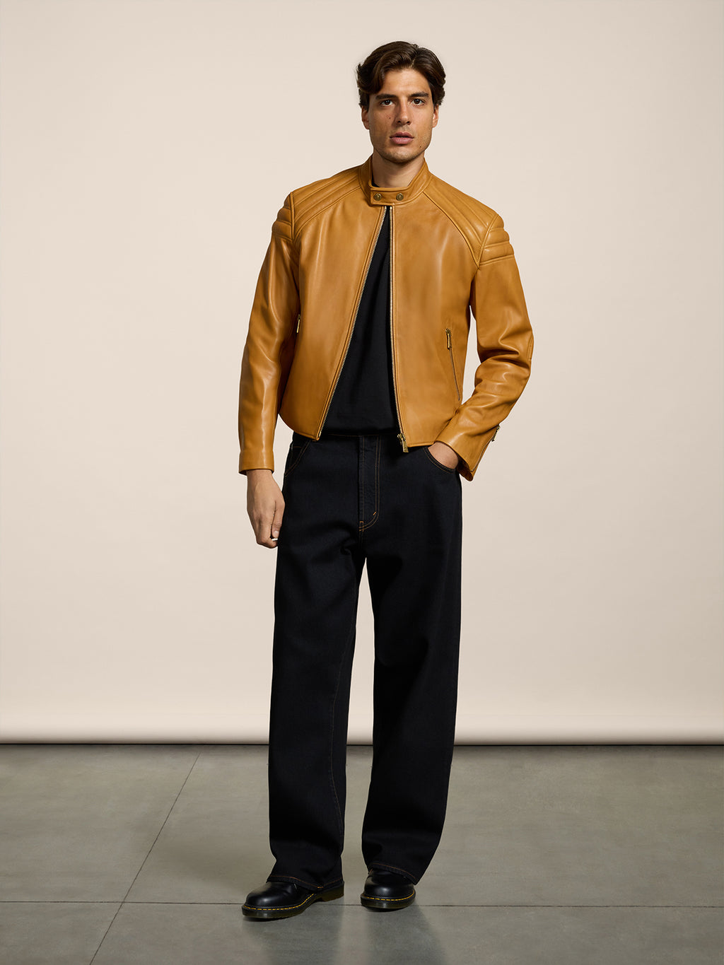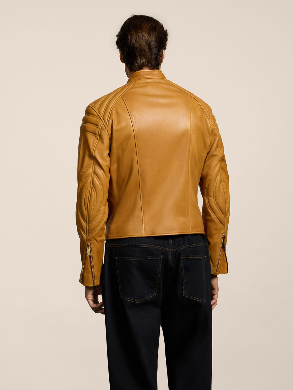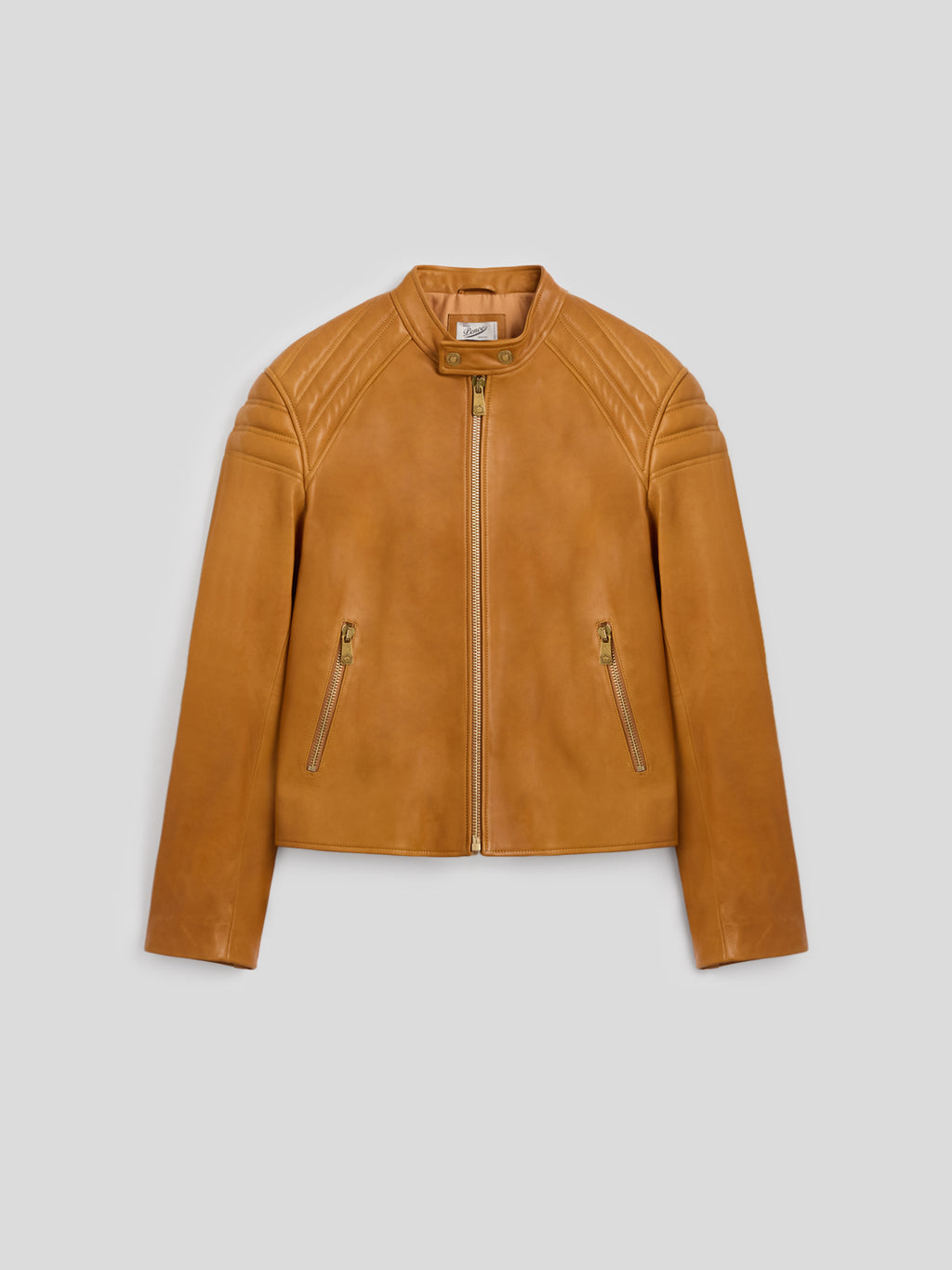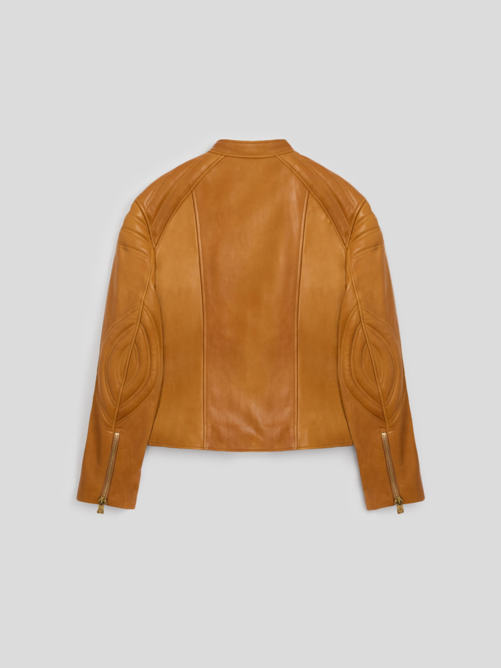 GIUBBOTTO BIKER UNISEX, REGULAR FIT, PELLE D'AGNELLO COLORE CARAMELLO