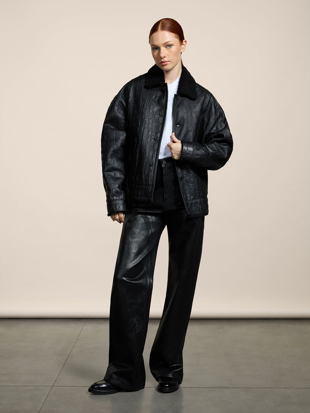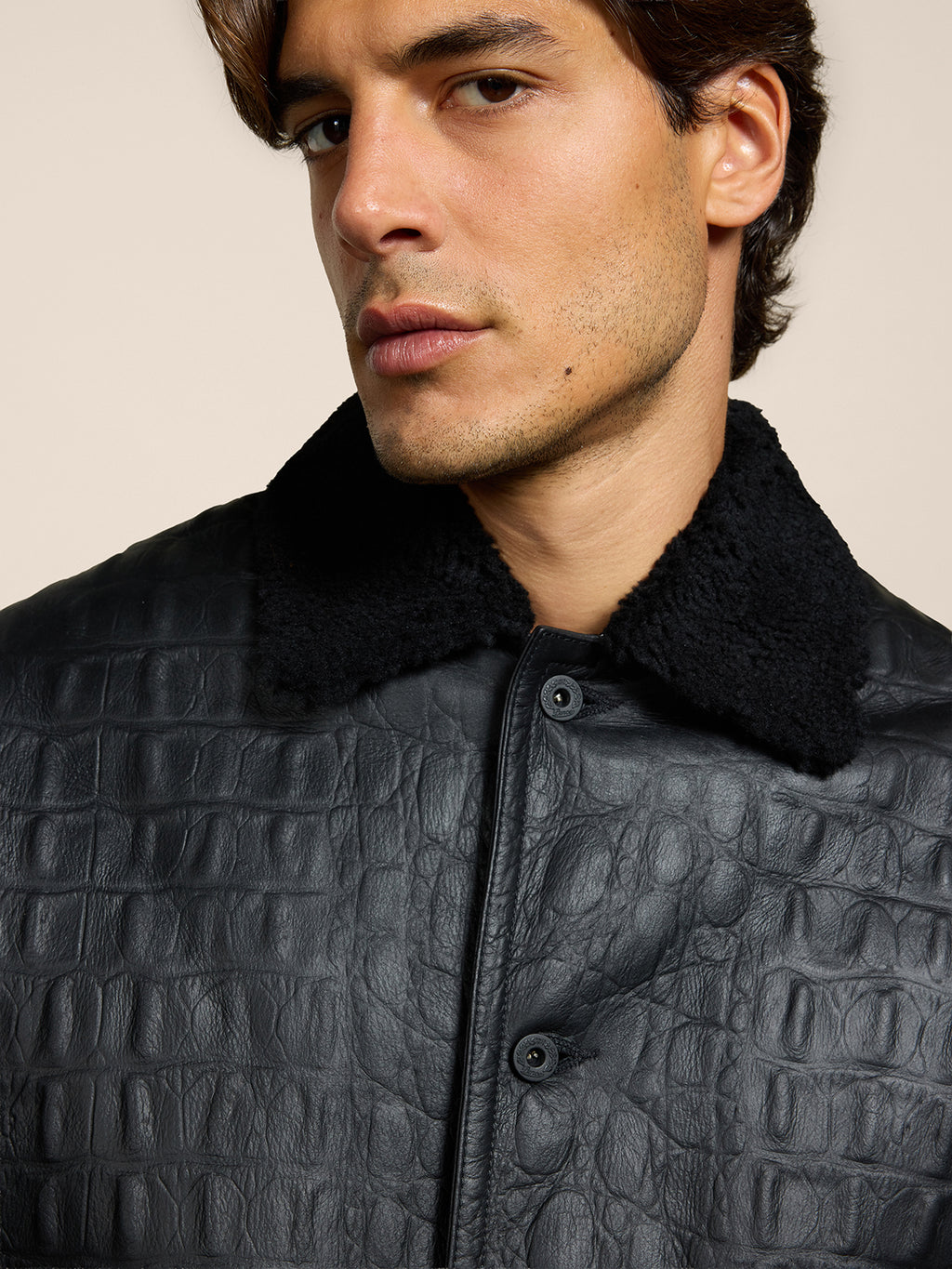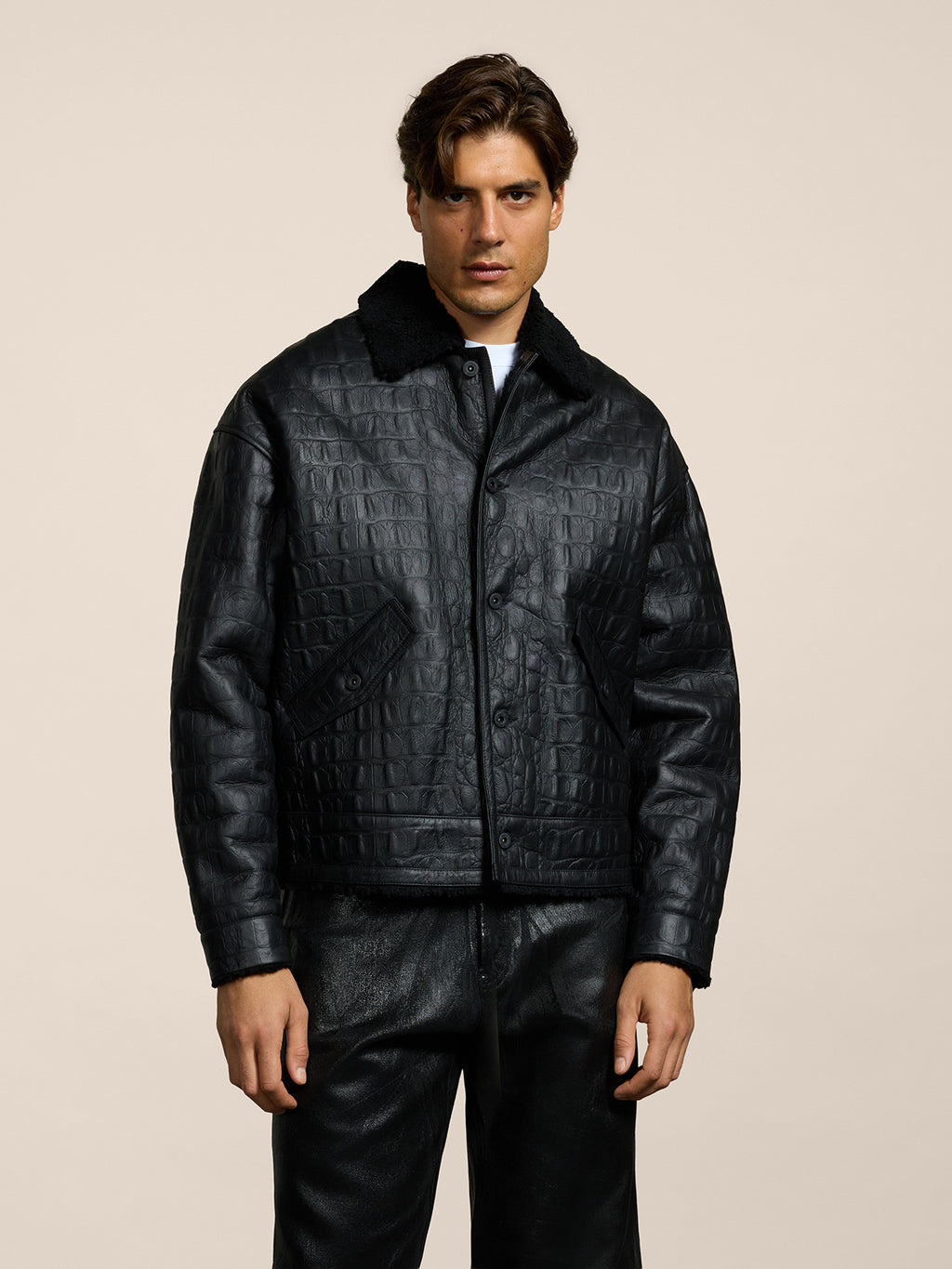 Giubbotto unisex in montone con vestibilità over ed impreziosito da una stampa cocco che conferisce calore e comfort.