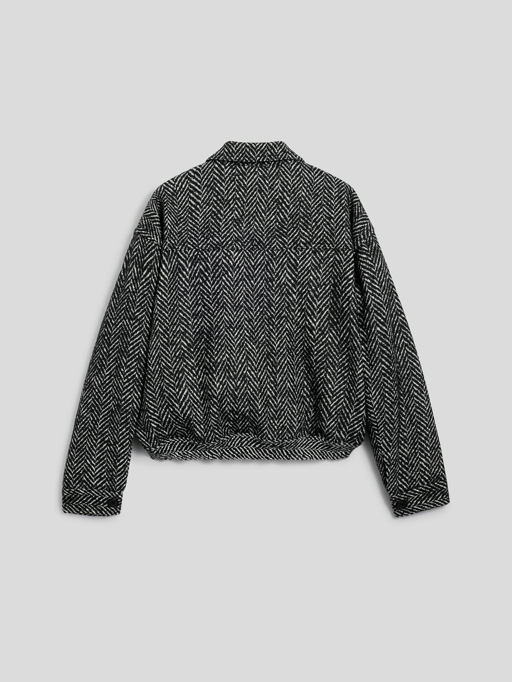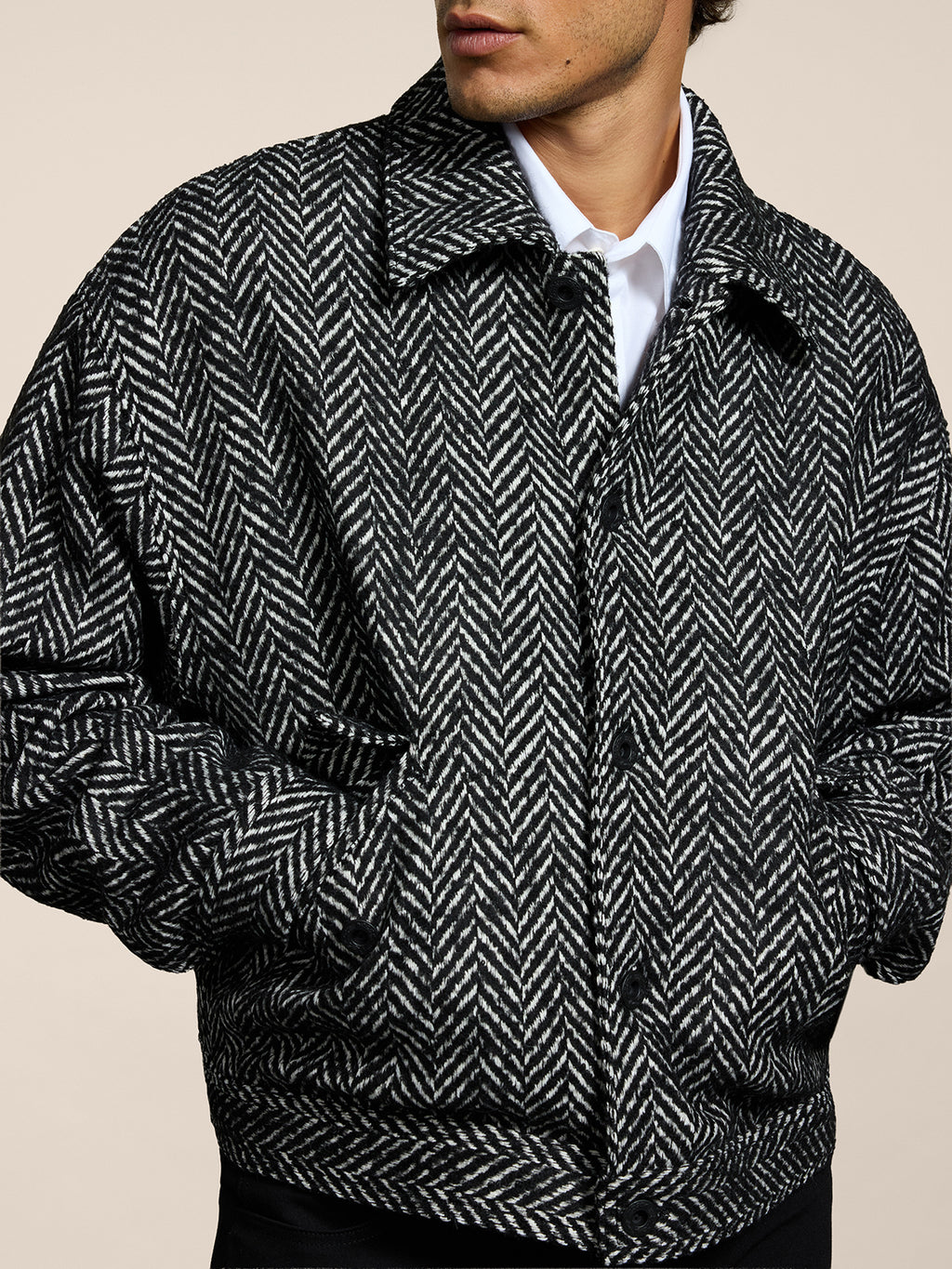 Giubbino unisex firmato Pence1979 dalla vestibilità over. Linee pulite, chiusura discreta e tasche funzionali accentuano la cifra contemporanea del capo. La texture spinata aggiunge dinamismo, mentre la linea ampia valorizza le spalle e la silhouette. Abbinalo a denim o tessuti pesanti per un look urbano e raffinato, capace di conferire carattere anche ad un outfit basico.