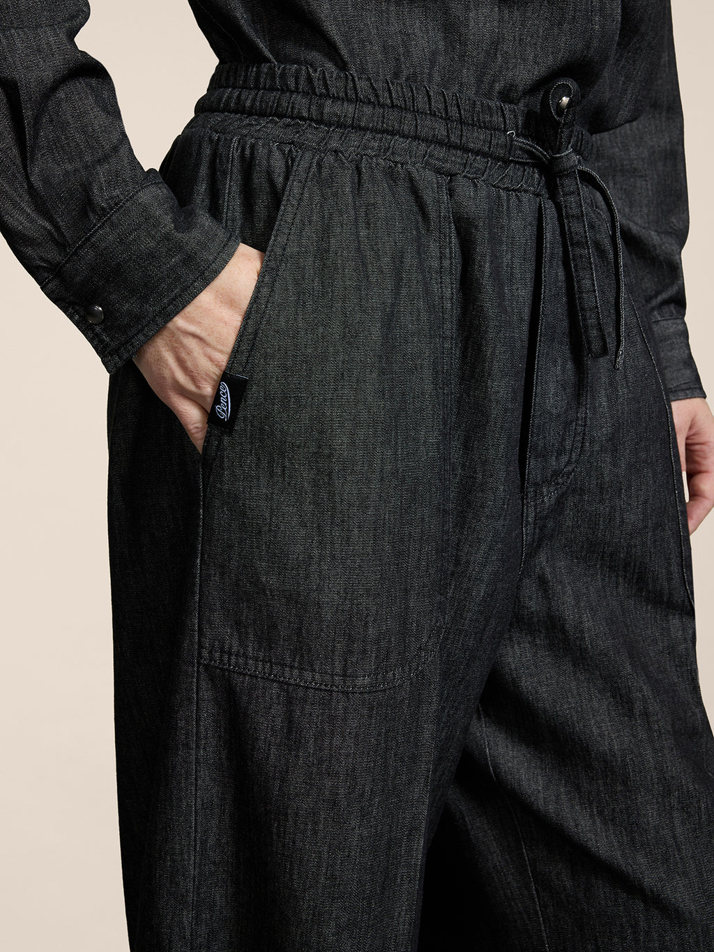 PANTALONI JOGGER UNISEX IN CHAMBRAY OVER FIT COLORE NERO