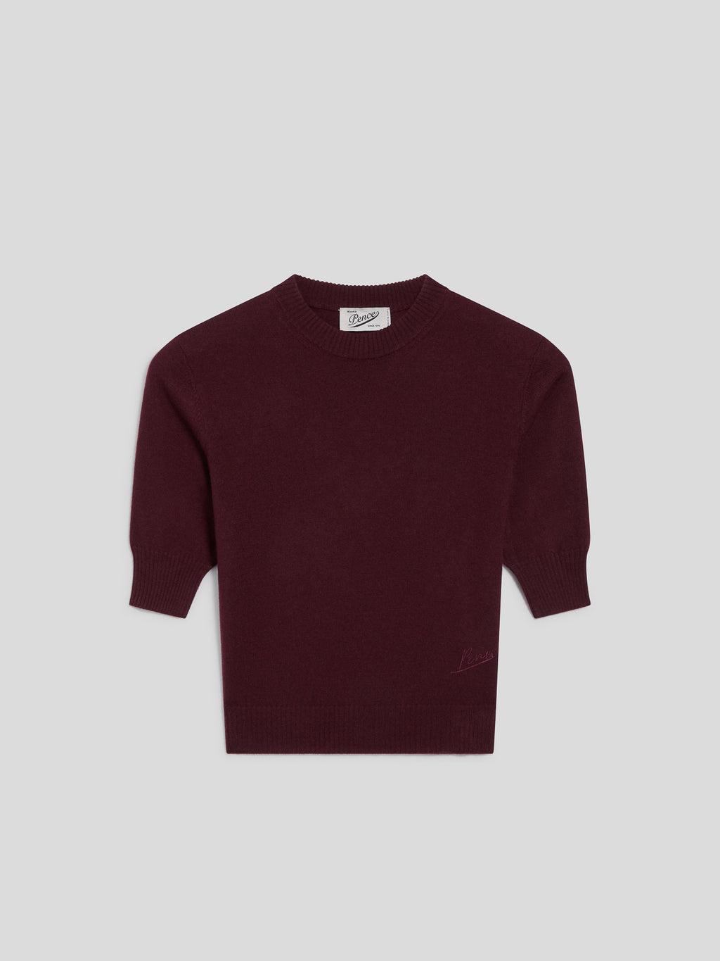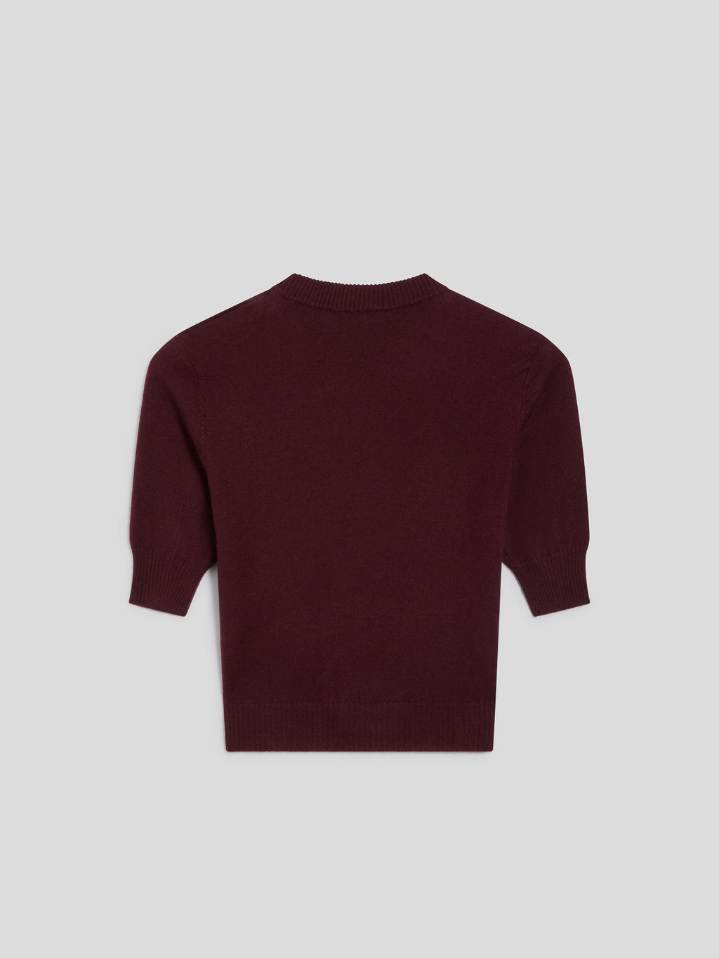 MINI MAGLIONE GIROCOLLO VESTIBILITA' SLIM MANICHE CORTE CON LOGO RICAMATO COLORE BORDEAUX