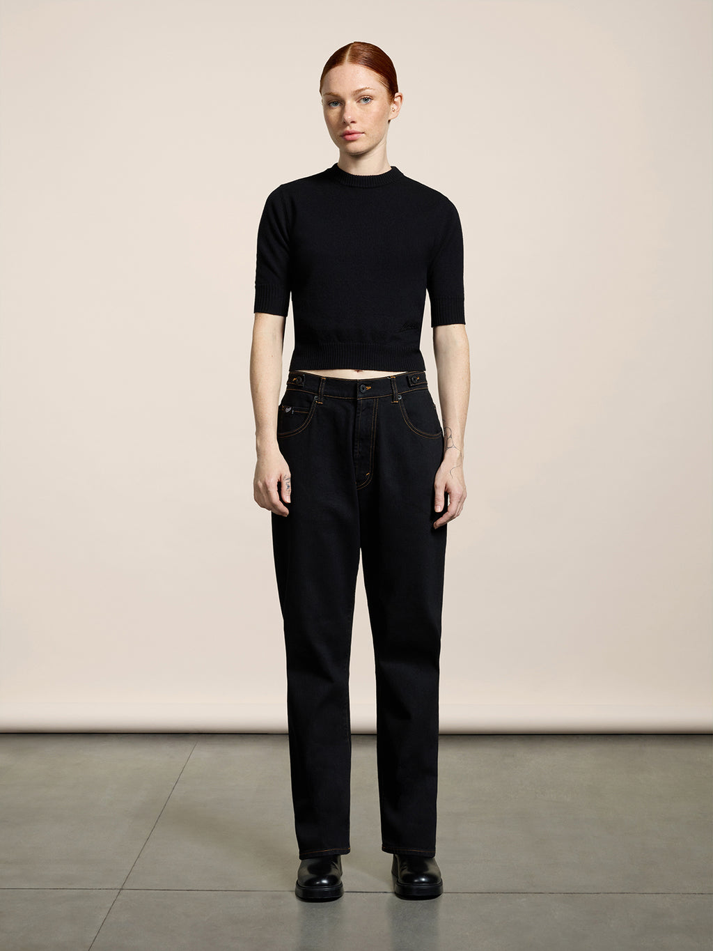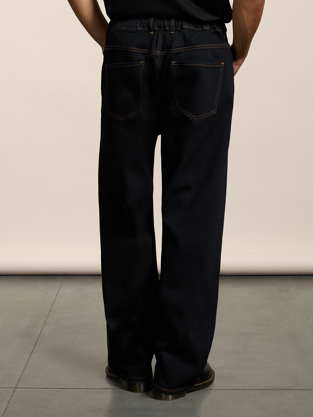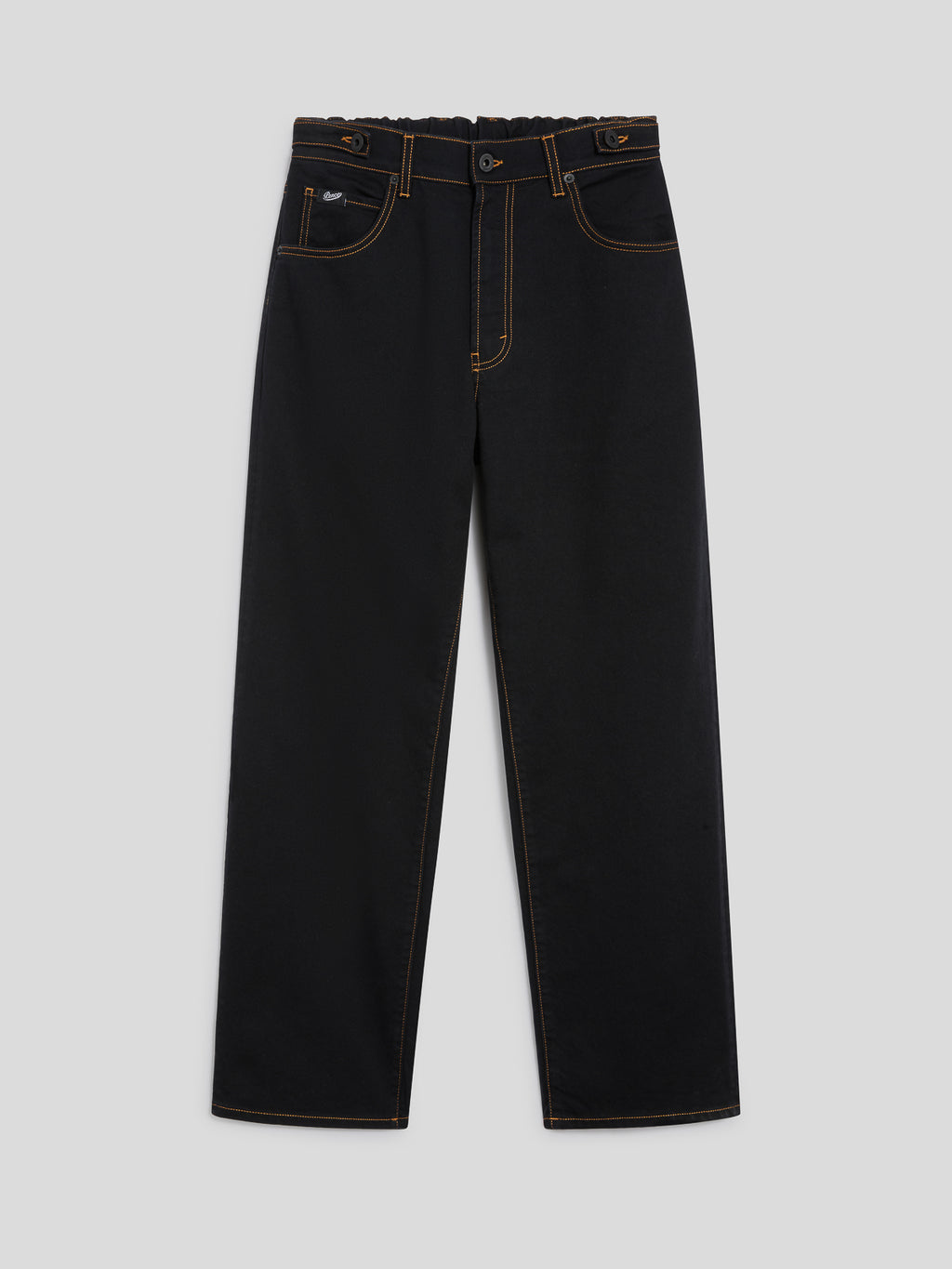 PANTALONE 5 TASCHE UNISEX RELAXED FIT IN DENIM COMFORT COLORE NERO CON IMPUNTURE TABACCO
