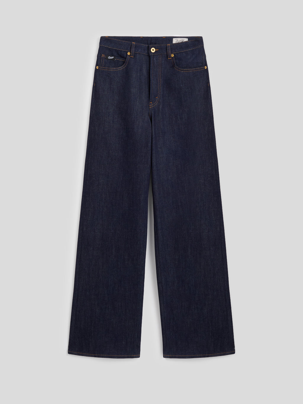 Pantalone in denim a cinque tasche, vita alta e gamba ampia: un modello iconico firmato Pence1979. Pantalone dal carattere morbido e sofisticato. Il taglio high-rise allunga la silhouette, mentre la linea ampia conferisce comodità. Prodotto in Italia con cura artigianale, attenzione ai dettagli per un effetto couture urbano firmato Pence1979