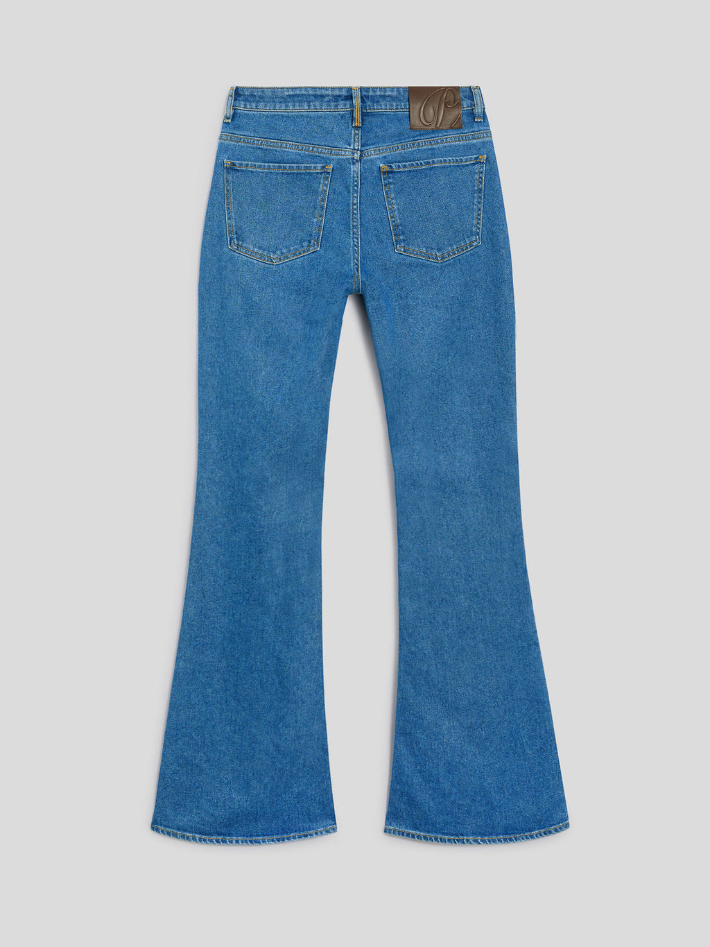 Pantalone denim a zampa con 5 tasche, pensato per una silhouette equilibrata tra stile e comodità. Vita media, cuciture pulite e gamba fluida: il carattere rétro si esprime senza rinunciare alla praticità. Abbinato a camicie morbide o felpe, regala un look daily raffinato e facile da sfoggiare.