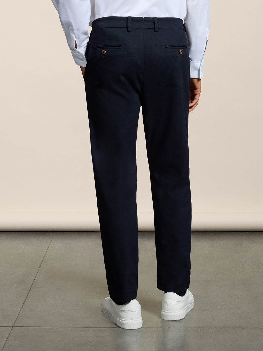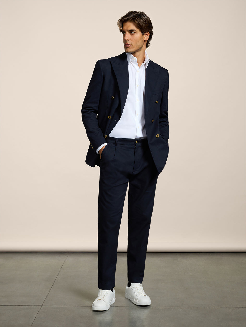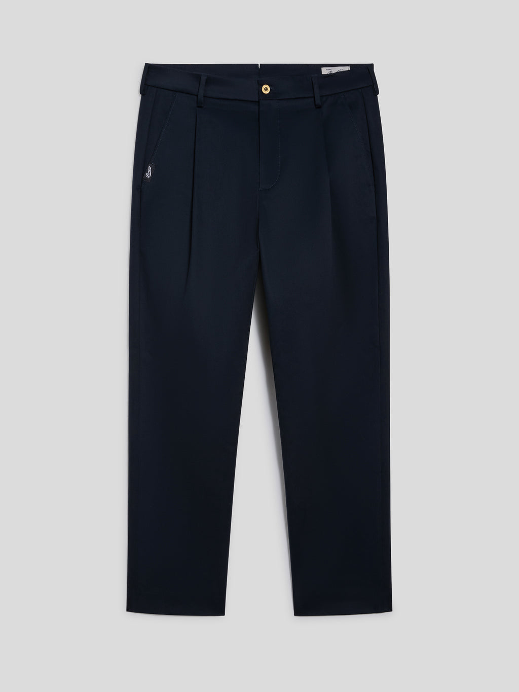 Pantaloni chinos con una pince, realizzati in rasatello di cotone. La vestibilità regolare incontra la leggerezza del tessuto, creando un equilibrio tra comfort e raffinatezza. Un capo versatile, ideale per chi cerca uno stile quotidiano che non rinunci all’eleganza Made in Italy.