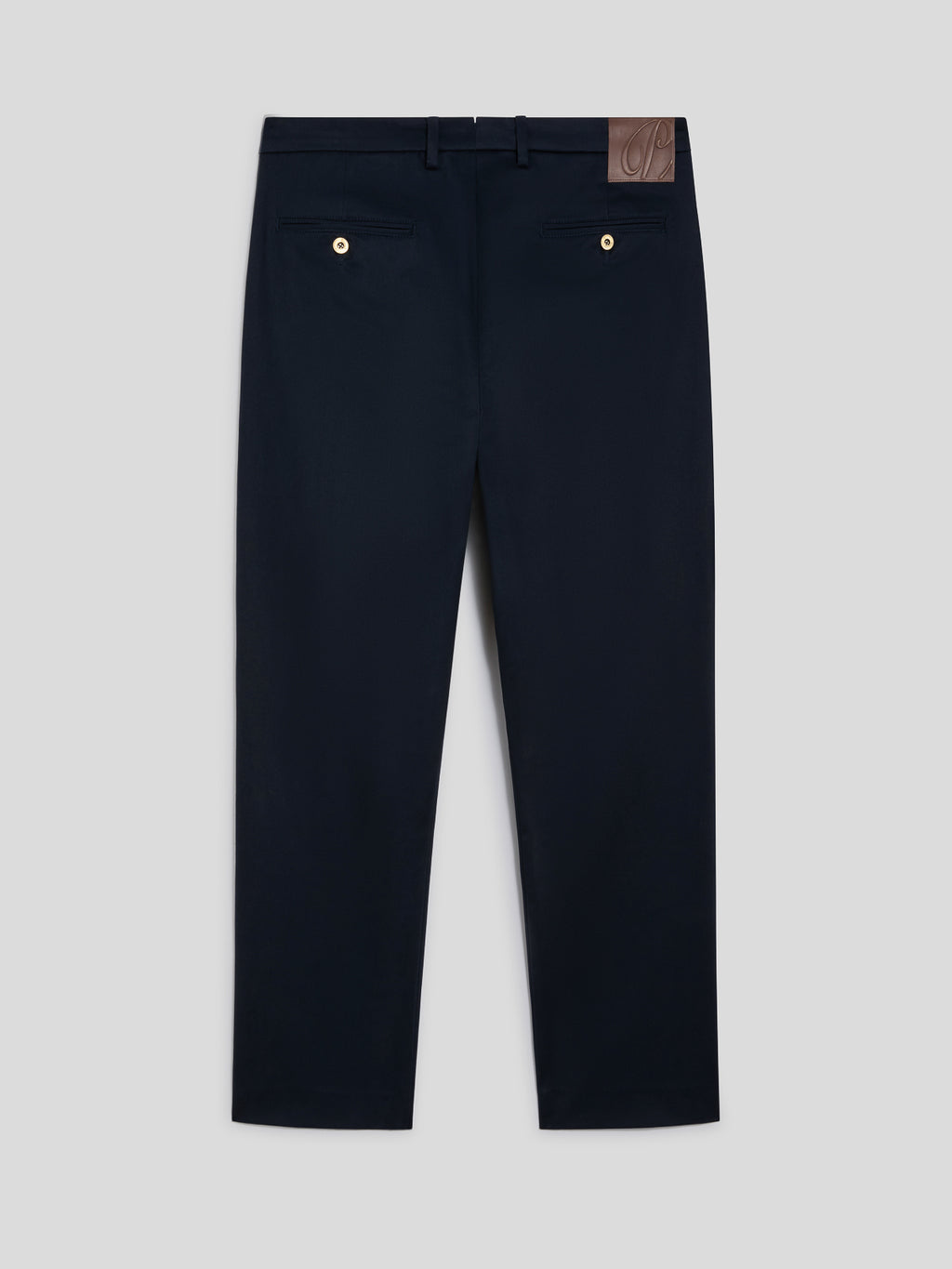 PANTALONE CHINOS DA UOMO CON 1 PINCES, REGULAR FIT, IN RASATELLO DI COTONE BLU