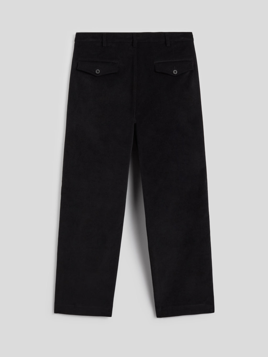 PANTALONE CHINOS DA UOMO CON DOPPIA PINCES , RELAXED FIT IN VELLUTO A COSTE, COLORE NERO