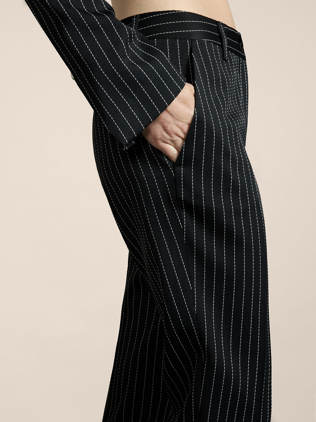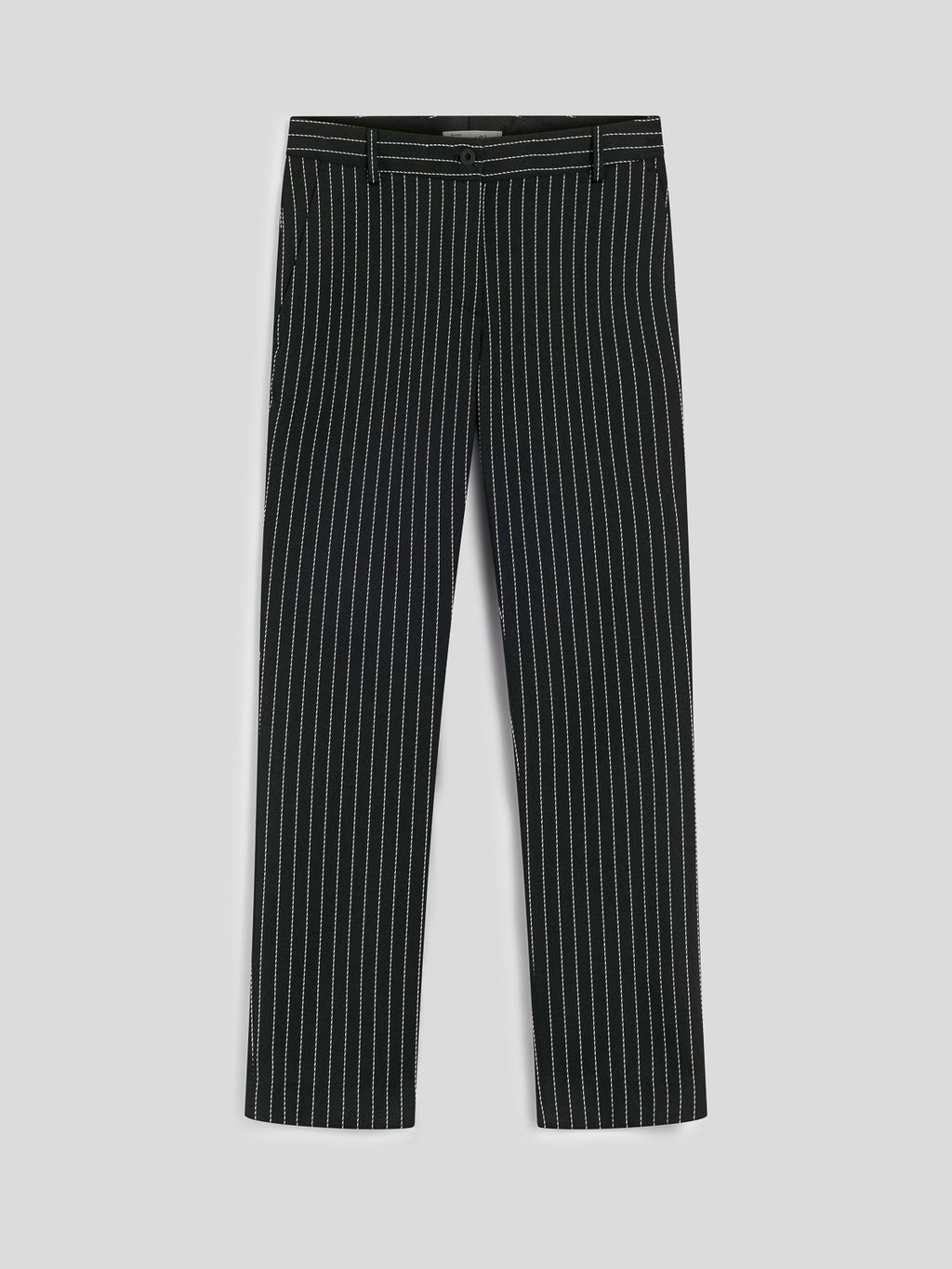 PANTALONE CHINO DA DONNA REGULAR FIT GESSATO COLORE FONDO NERO RIGA BIANCA