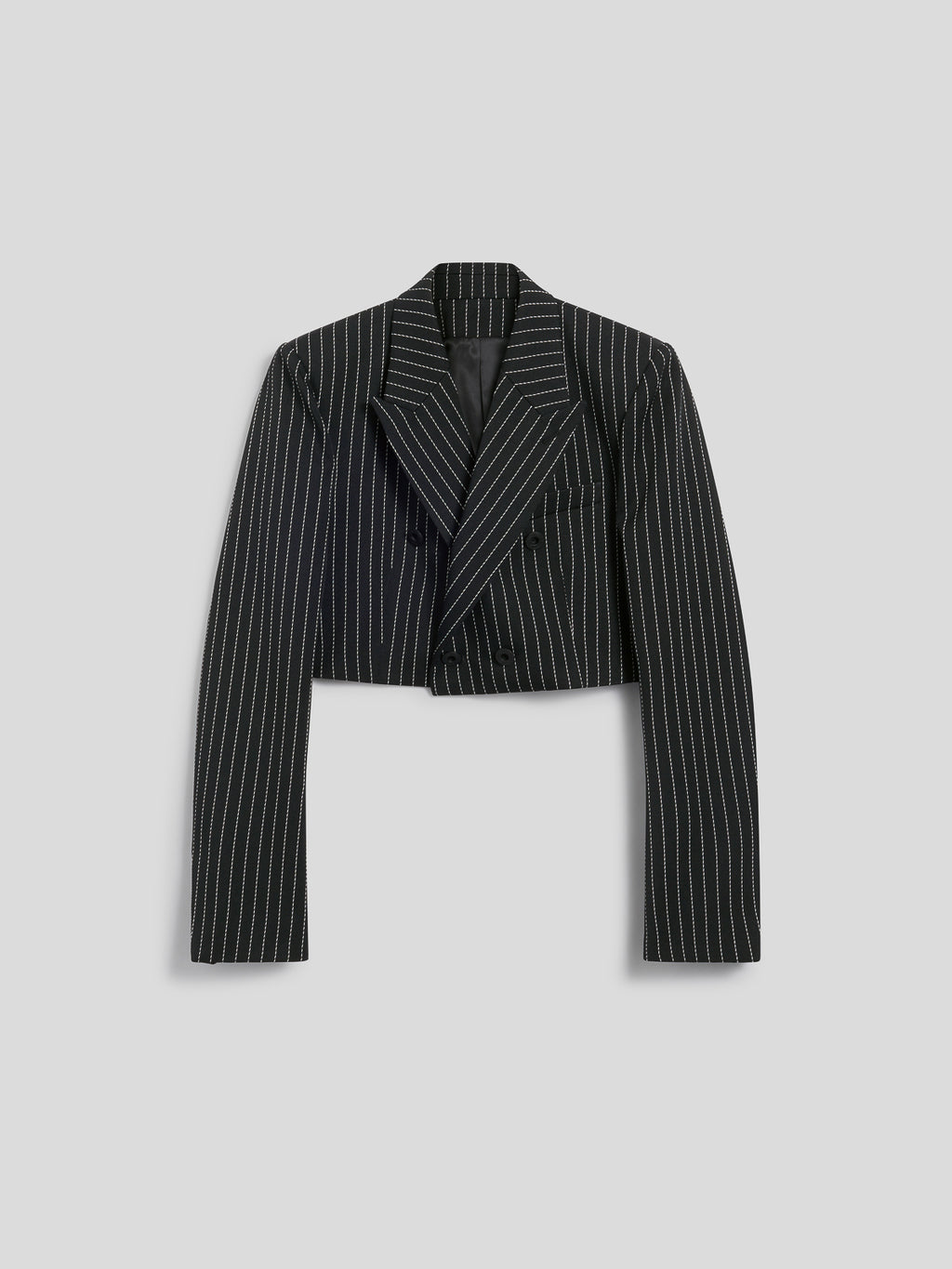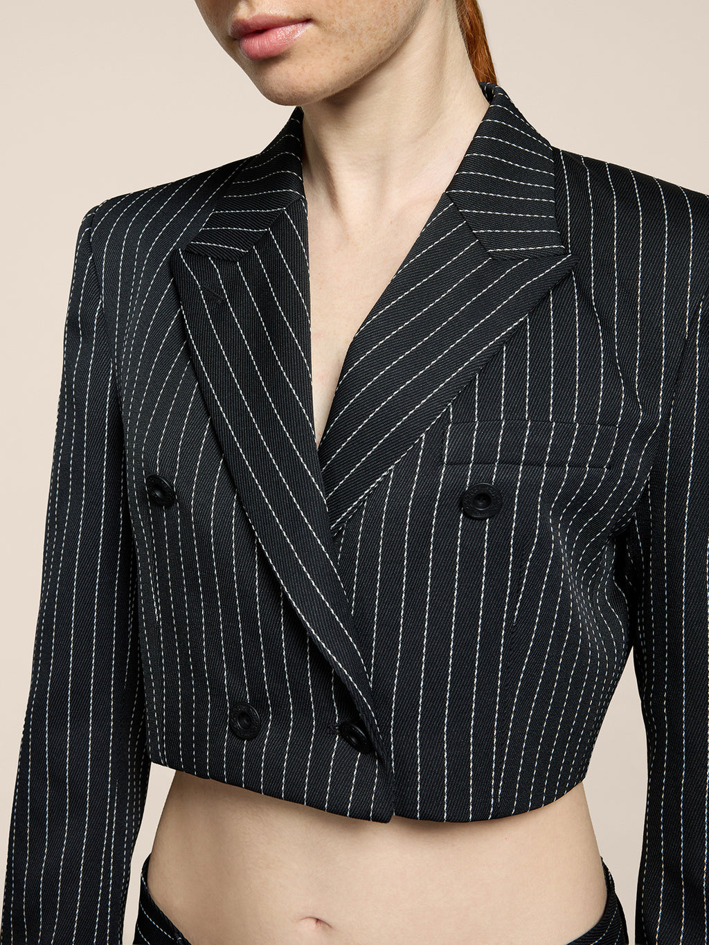 SPENCER DA DONNA DOPPIOPETTO REVERS LANCIA,GESSATO FONDO NERO RIGA BIANCA